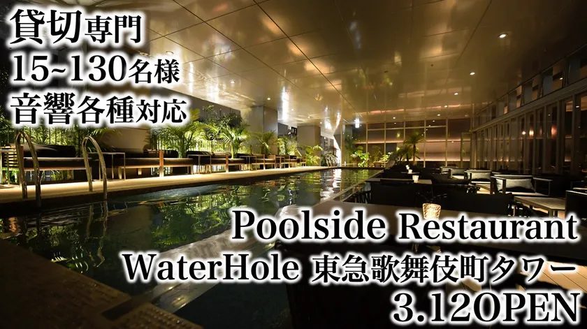 都内20店舗人気店の進化系 『シュラスコレストランGRAN ALEGRIA』、 銀座で連日満席のしゃぶしゃぶ店『しゃぶ輝』、 ラグジュアリーなプールサイド貸切専門『WaterHole』が 東急歌舞伎町タワー5Fに3月12日OPEN