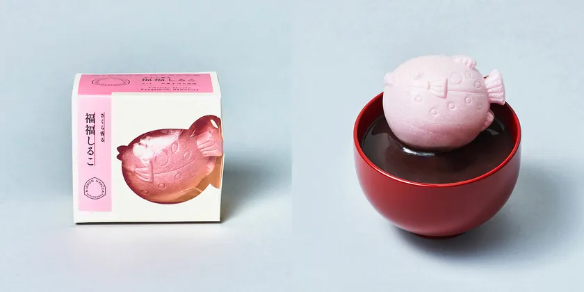 お湯を注ぐだけで上品な甘さがとろけ出す即席しるこ。春らしいピンク色に染まったふぐ型の最中には、和三盆を使用した上質なさらし餡がたっぷり。「ふぐ=福」にちなんだ縁起の良い商品は、新年度のご挨拶としても喜ばれます。