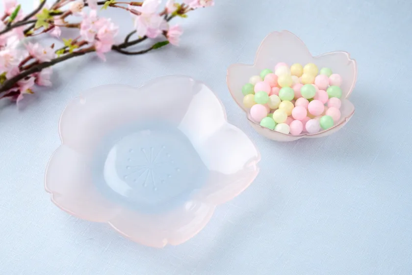 やわらかくほのかに光るようなさくらの花をモチーフにした季節の器。桜をそのまま硝子にしたような姿は趣があり、たくさん並んだ食卓は、桜が咲き誇る春の景色を思わせます。小鉢と小皿、どちらも使いやすいサイズで日常使いやパーティーにもおすすめです。