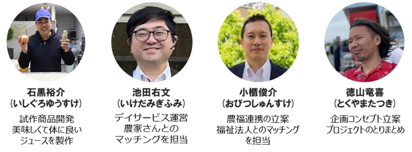 ・高齢者・障がい者が従事した野菜、果物をsmiloop projectが一度買い取り、ジュースに加工して生産者に販売することにより、生産者に利益が還元される仕組みづくりの構築