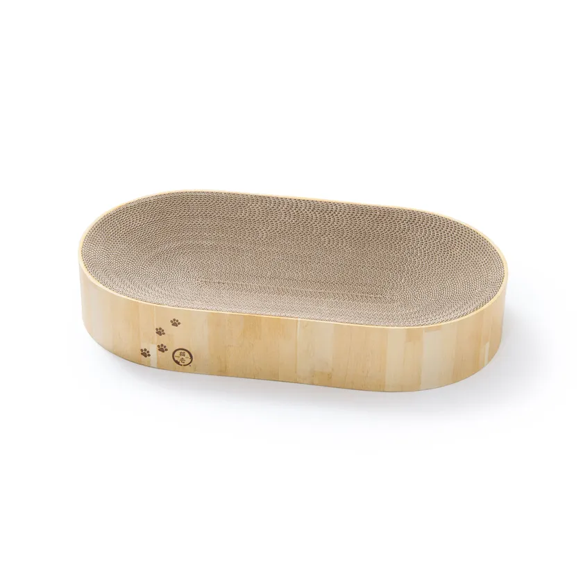 累計74万個突破!猫工学デザインで大人気のつめとぎベッド 「バリバリボウル」に、 両手両足をしっかりのばしてつめとぎができる 横長設計で置き場所を選ばない「オーバル」タイプが新登場