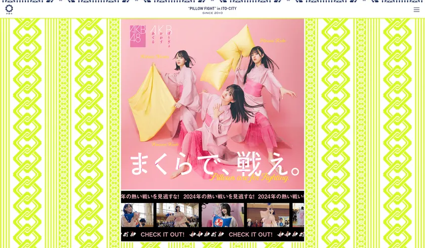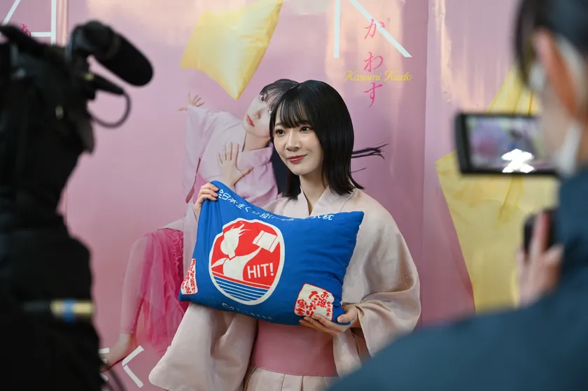 「第12回全日本まくら投げ大会 in 伊東温泉」の 公式アンバサダーにAKB48から、18期研究生 工藤華純さん・ 久保姫菜乃さん・成田香姫奈さんの3名が就任! AKB48 18期研究生 成田香姫奈さんが ピンクの浴衣姿で始球式ならぬ始枕式にチャレンジ!