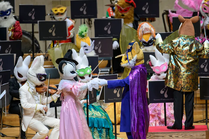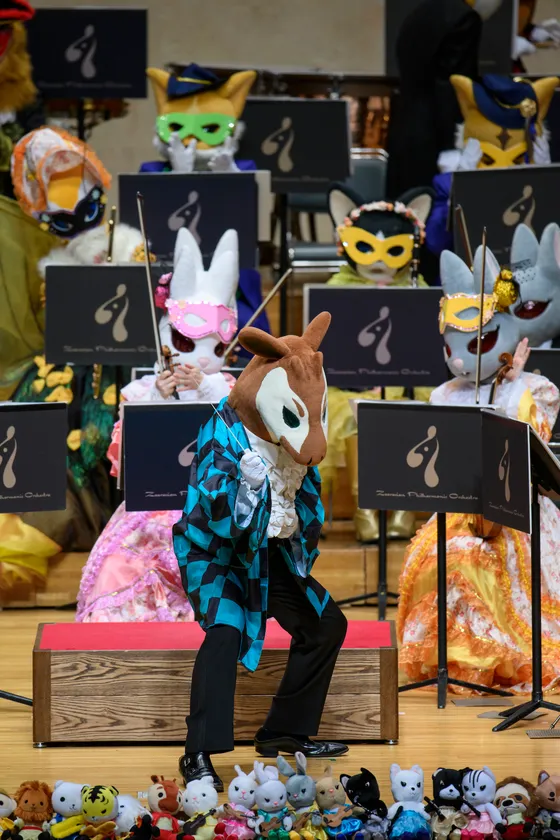 「弦うさぎ」(うさぎの弦楽四重奏)「サキソフォックス」(キツネのサックス四重奏)といった動物の仲間たちと行う、親子のためのコンサート「音楽の絵本」は、全国各地のホールで話題となり、海外公演も含め年間約150を数えます。2011年にはオーケストラ「ズーラシアンフィルハーモニー管弦楽団」を結成。これまでのコンサートから更に一歩踏み出し、慣れ親しんだ音楽をより交響的に紡ぐ「シンフォニック童謡」をテーマに展開。子どもたちのクラシック音楽への興味を一層高めています。