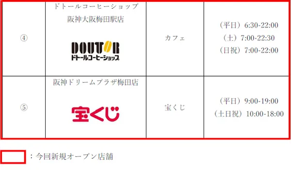 阪神電気鉄道株式会社(本社:大阪市福島区、社長:久須勇介)、株式会社エキ・リテール・サービス阪急阪神(本社:大阪市北区、社長:青木眞治)及び株式会社阪神ステーションネット(本社:大阪市福島区、社長:大地一正)は、大阪梅田駅の改良工事に併せて順次店舗区画のリニューアルを進めており、2024年3月12日(火)の「ドトールコーヒーショップ阪神大阪梅田駅店」、「阪神ドリームプラザ梅田店」のオープンをもって、同駅西改札の店舗が全面開業します。