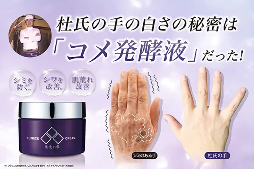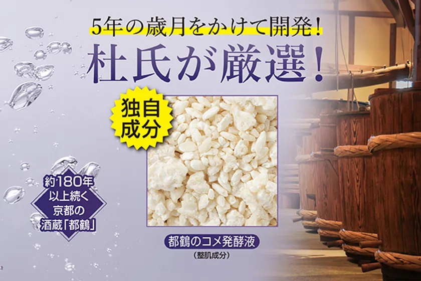 180年以上の歴史のある京都の老舗酒蔵“都鶴”の杜氏には長年、手の甲に大きなシミがありました。しかし、毎日仕込みをおこなう間に消えてなくなり周りにも手の白さに驚かれることが多くなったというのです。この杜氏の経験よりコメ発酵液を化粧品の原料にすることに成功しました。
