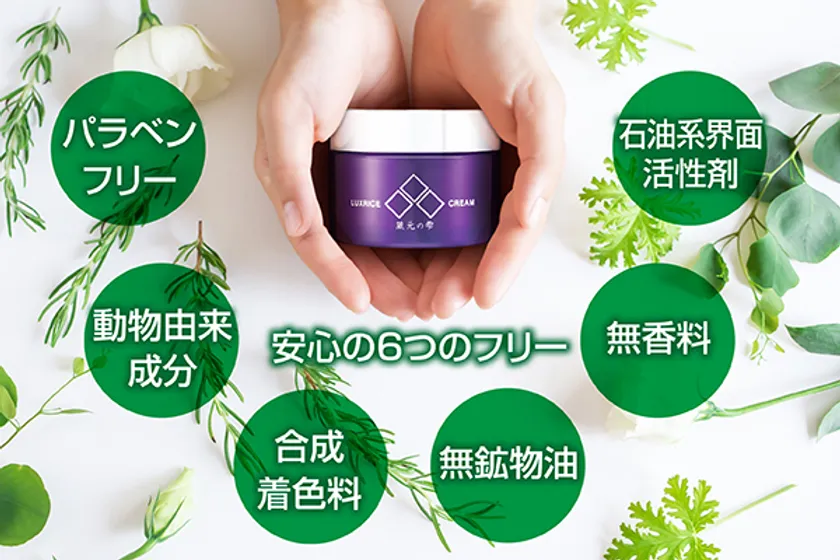 パラベン、動物性成分、合成着色料、鉱物油、石油系界面活性剤、香料が無配合です。ゆるぎ肌に方も安心して使えます。