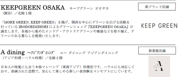 ■グラングリーン大阪の「公園内施設」「北館」「南館」ショップ&レストランについてのご紹介