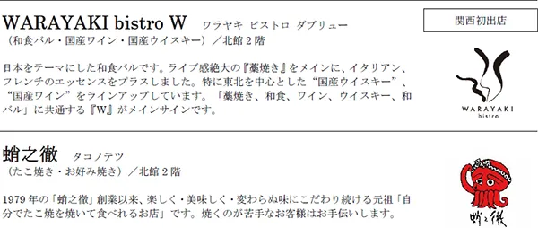 | 施設名称 | グラングリーン大阪 ショップ&レストラン (GRAND GREEN OSAKA SHOPS & RESTAURANTS) |