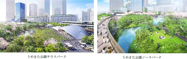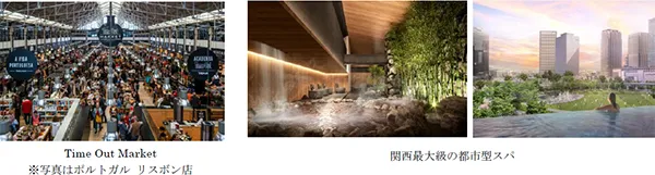 2025年春頃にオープン予定の南館では、最先端の都市型ライフスタイルの先駆けとして、国際色豊かなレストランやショップが出店します。関西最大級の都市型スパには天然温泉や、うめきた公園を見渡せるインフィニティプールが備わり、ウェルネスハブとして、健康や美容、エクササイズ、リラクゼーションなど、高い付加価値を有する体験機会を提供します。また、グローバルメディア「Time Out」が監修する大規模フードマーケット「Time Out Market Osaka」がオープンします。
