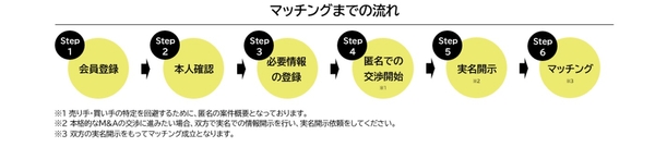 マールマッチングは、売り手は法人企業または個人事業主、買い手は法人企業のみが登録できるサイトです。買い手は法人企業のみのご利用ですので、売り手は安心してご利用いただけます。登録するためには一定の審査がございます。売り手は譲渡案件登録、買い手はニーズ登録および企業情報登録が必須です。登録された案件は、匿名の状態で掲載され、オンライン上で秘密保持契約の内容に同意した後に実名が開示される流れとなります。