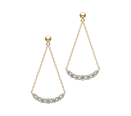 繊細なチェーンと七色に輝くダイヤモンドが耳元で揺れる姿がエレガントな印象