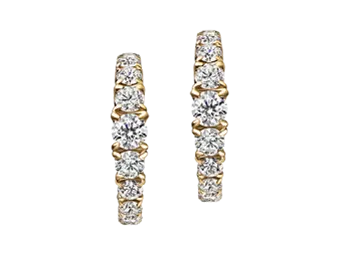 センターに向かってグラデーションがかかったダイヤモンドを交差した爪でセティイングしたフープタイプのピアス。サイドから見たときの透かし模様が美しく細部までこだわりを感じられます