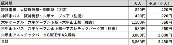 ※乗車当日往復1回限り有効(六甲山上バスは乗り降り自由)