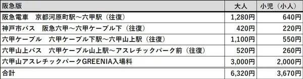 阪急版: 阪急全駅(神戸高速線を除く。)から阪急六甲駅までの往復乗車及び下記の共通区間