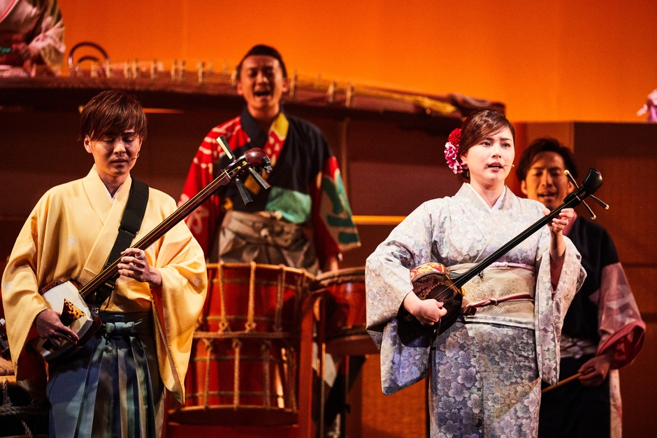 雅楽器、箏、津軽三味線、篠笛、太鼓、奄美民謡・・・個性豊かな奏者達が音を紡ぎゆく。