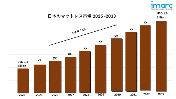 日本のマットレスの市場規模は、2024年に13億米ドルに達しました。今後、IMARCグループは、2025 年から2033年の間に4.5%の成長率(CAGR)を示し、2033年までに市場が19億米ドルに達すると予想しています。