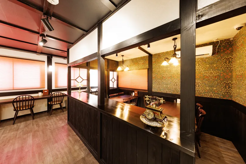 「プリン専門店のいちごプリンパフェ」は、イートイン限定の商品です。倉敷プリンのイートインスペースは店舗2階にあり、階段を上がると目の前には大正レトロがコンセプトの空間が広がっております。倉敷美観地区が栄えた大正時代をイメージしておりますので、ゆっくりと思いを馳せながら倉敷美観地区旅行の想い出に楽しい時間を過ごしていただければと思っております。