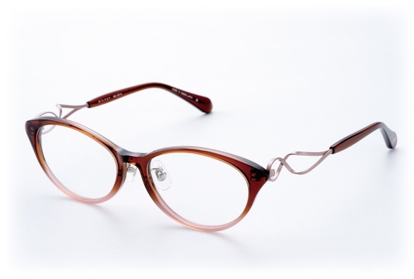 フロントのグラデーションカラーと、サイドの曲線が美しい〈ミクサージュ〉のフレーム。βチタン素材を採用した特徴的な曲線は弾力性が高く、しなやかな掛け心地を実現しています。