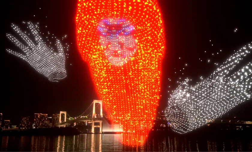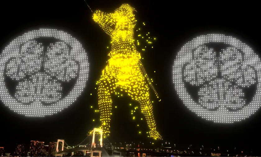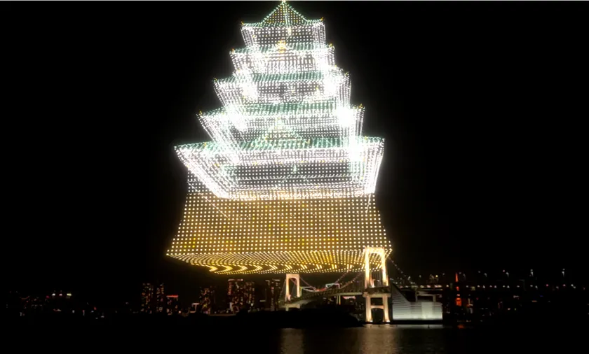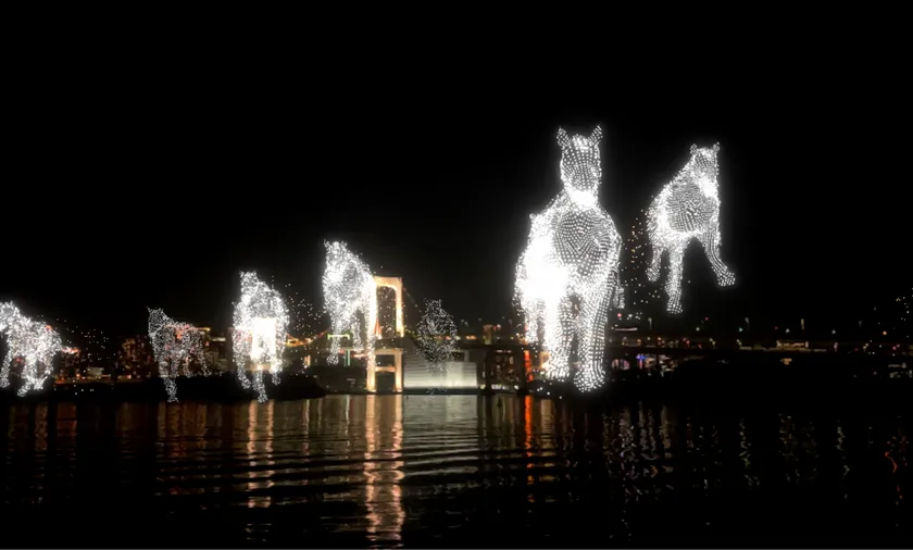 お台場の夜空に映し出される3D映像作品 光と音で奏でるAirMappingShow EDOを初公開