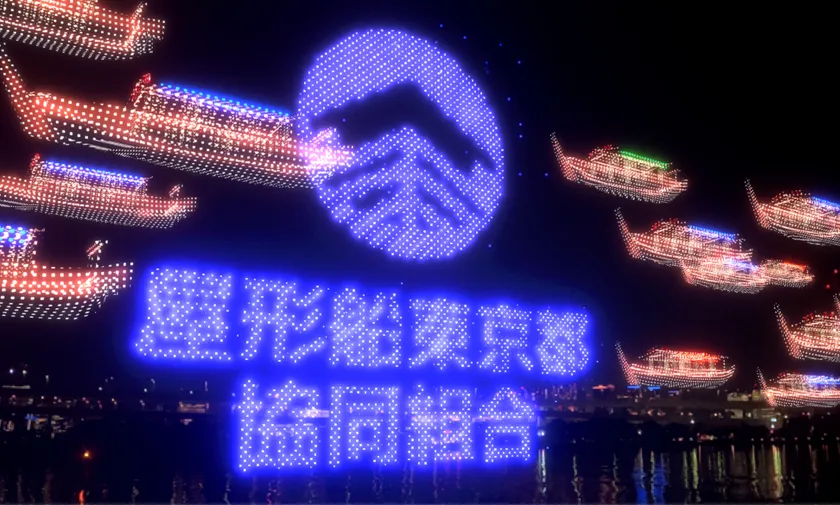 AirMappingShowは、隅田川の屋形船に乗船し、お台場で鑑賞できます。