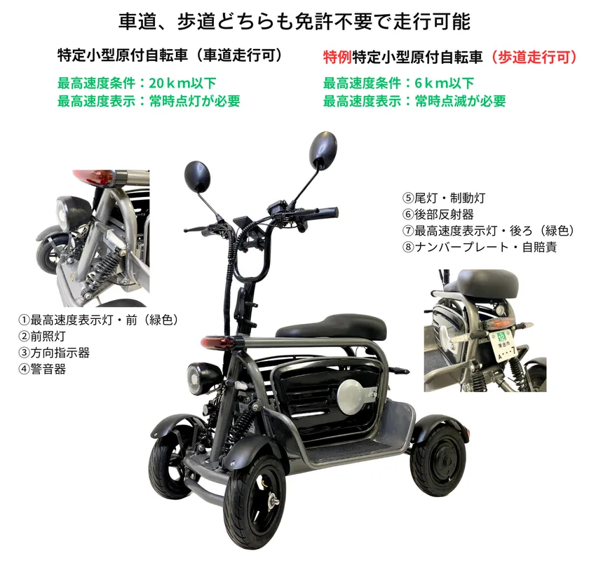 車道も歩道も免許不要で走行可能