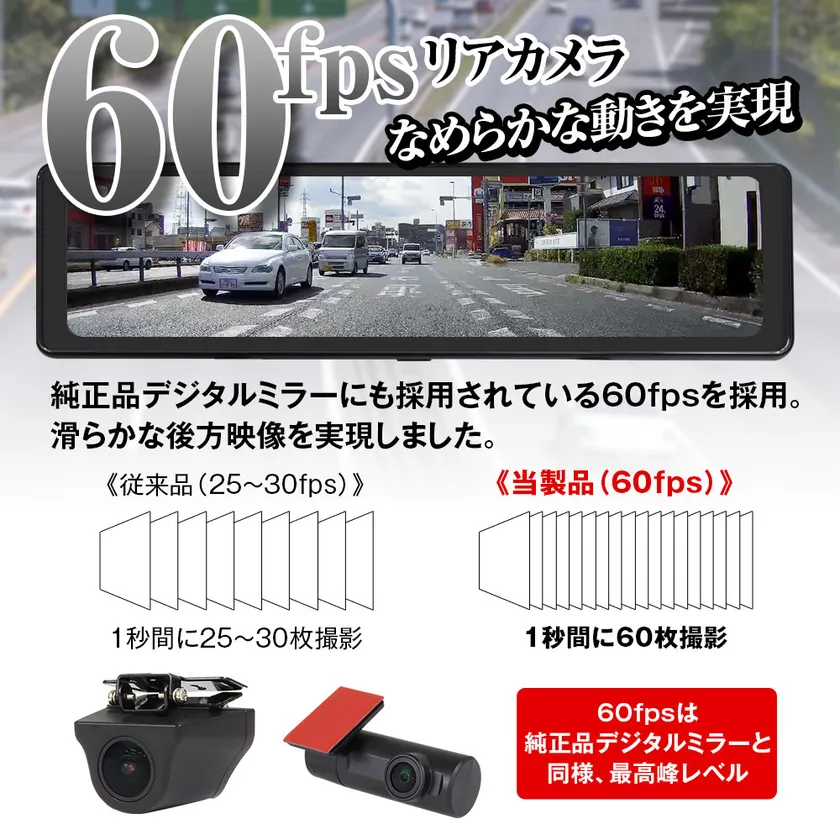 純正デジタルミラーやMAXWINハイエンドモデルに採用されている高フレームレートカメラを採用。従来品に比べ、滑らかな後方映像を実現しました。