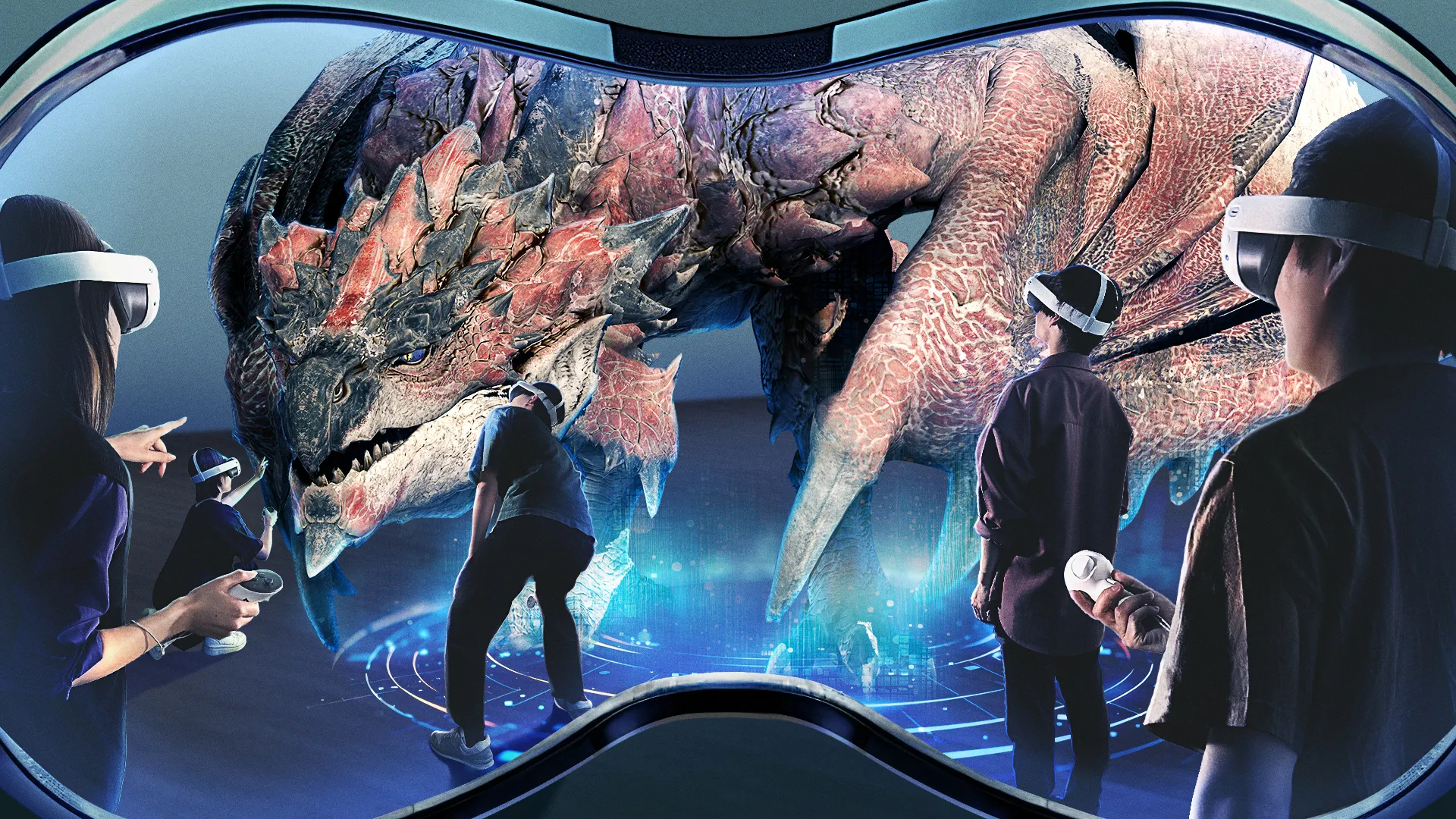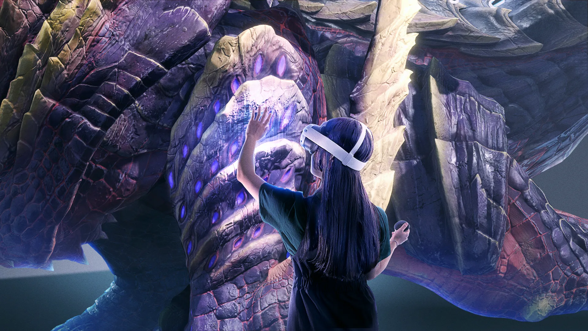 展覧会のメインコンテンツは、デジタルでモンスターを間近で観察できる「モンスター図鑑 AR体験ゾーン」。最新のARデバイス-Meta Quest3-を使用することにより、目の前に大迫力のメインモンスターが登場します!