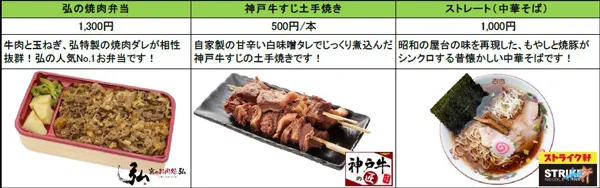 1.監督・選手コラボグルメラインナップ(「☆」は後述の景品プレゼント対象商品です。)