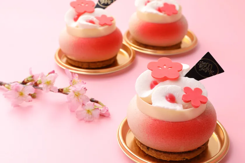 春の訪れを告げる告げる梅の花をイメージしたケーキ。