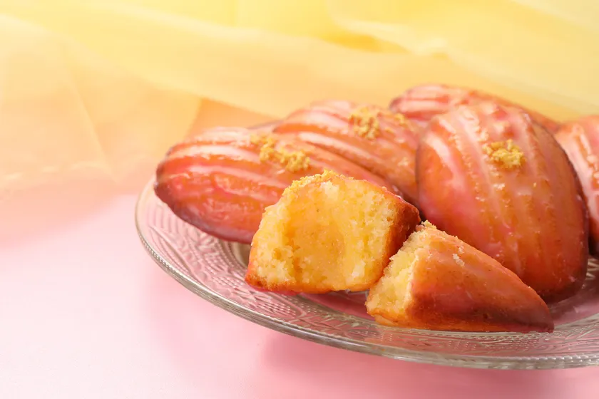 ホワイトチョコレートを練り込みしっとりと焼き上げたマドレーヌにタイムが香るレモンのコンフィチュールを絞りました。フランボワーズのアイシングで香りと色味をほどこした、春を感じるマドレーヌです。