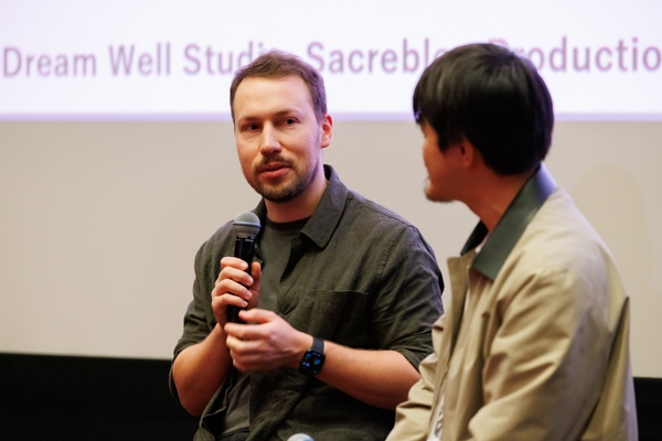 上映後に行われたトークプログラム「メイキング・オブ:Flow」では、ギンツ・ジルバロディス監督が自身の創作の歩みを語りました。短編から長編への発展、一人制作からチーム制作への移行、そして本作における技術的・創造的プロセスまで、詳細に紹介されました。