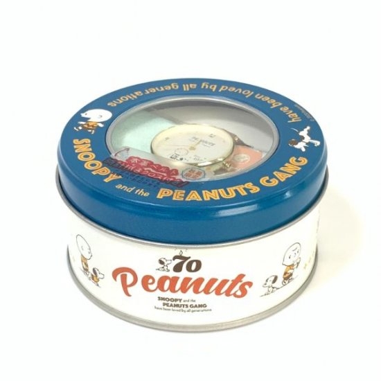 専用の缶ボックスに収納された腕時計で、ベーシックなカラーのベルトも魅力♪文字盤には、コミックの1シーンがデザインされていて、スヌーピーらしさもプラスされています。