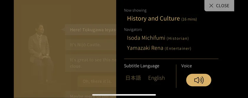 手元のスマートフォンで、ナビゲーターの会話を日本語・英語の字幕で楽しむことができる