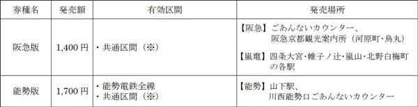 ※共通区間:阪急電車全線(神戸高速線を除く)、嵐電全線、京都バス(嵐山・嵯峨野エリア)