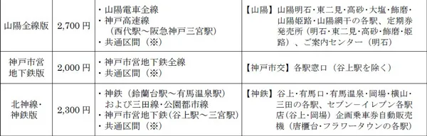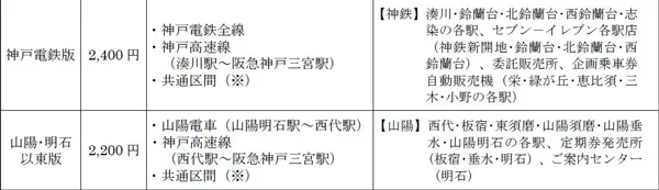 これまで「阪急版」および「能勢版」の2券種を発売しておりましたが、今年から新たに「神戸電鉄版」「山陽・明石以東版」「山陽全線版」「神戸市営地下鉄版」「北神線・神鉄版」の5券種を追加し、神戸方面エリアのお客様にもご利用いただけるようになります。