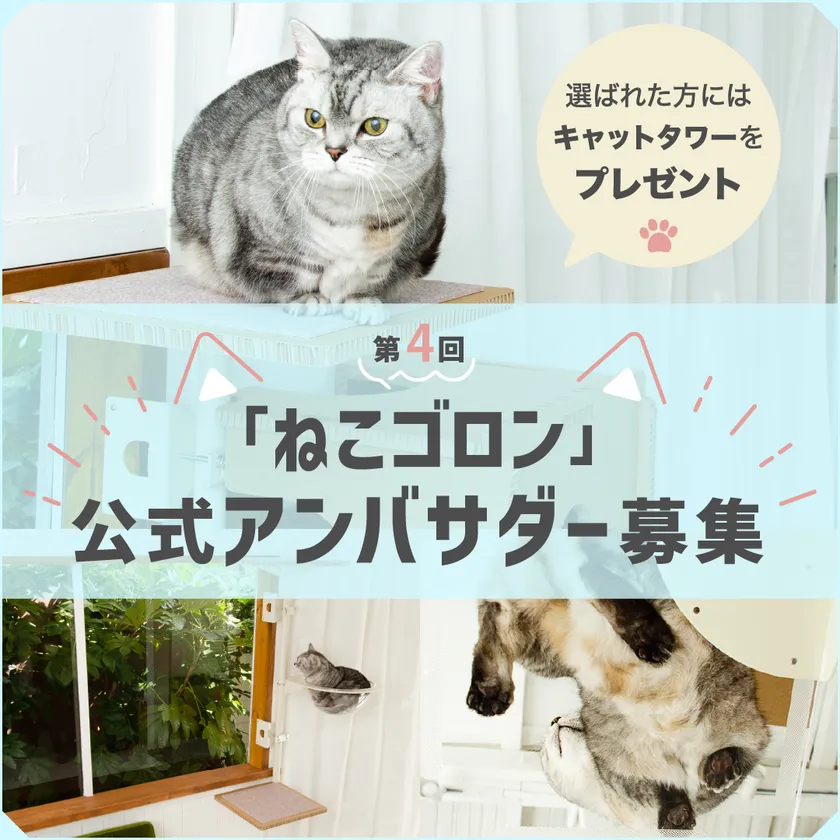 飼い主さんと猫ちゃんに商品に触れてもらい、実際の使用感など良いところも悪いところも含めた生の声をお届けするため、4回目となる今回も私たちと一緒に商品の魅力をアピールし、「ねこゴロン」を盛り上げてくださる公式アンバサダーを4名様募集いたします。
