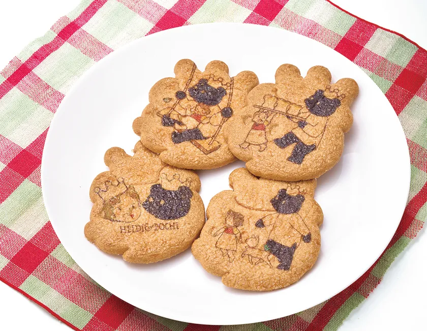 ケーニヒス クローネのキャラクター“ポチ”を型どったバター風味のサブレにハイジと“ポチ”がコラボしたかわいいイラストをプリント。