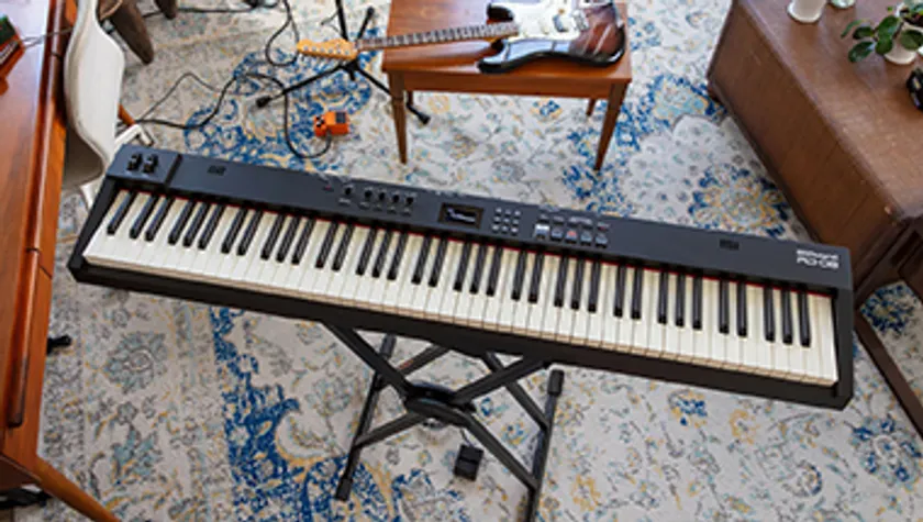 『RD-08』は、上位モデル「RD-88」同様に、繊細な演奏タッチにもスムーズに対応しダイナミックな音色変化から減衰音まで再現するアコースティック・ピアノ・サウンドや、表現力豊かで迫力のあるエレクトリック・ピアノ・サウンド、自然な演奏感を実現するハンマー・アクション構造のピアノ鍵盤を搭載。88鍵の本格的なステージピアノながら、13.5kgと軽量で頑丈な構造になっているので、自宅からスタジオやライブ会場へ気軽に持ち運べます。ステレオ・スピーカーを内蔵しているので、アンプにつなぐ手間もなくすぐに演奏を楽しめます。