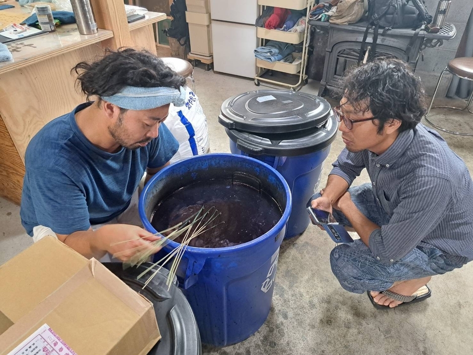 最初は「イ草」を染める案もありましたが、技術的・コスト的な壁にぶつかりました。たどり着いたのは、「糸から藍染して、畳縁を織る」という前例のない挑戦。