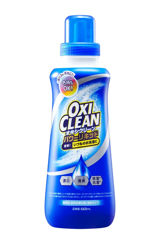 酸素の力で汚れを落とす、オキシクリーンの液体タイプです。液体だから溶かす手間なく、毎日のお洗濯を、ニオイ・汚れを残さない6つのパワーでさらに進化しました。おしゃれ着や色柄もののお洗濯にもお使いいただけます※。