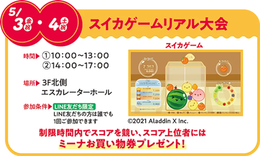 制限時間内でスコアを競い、スコア上位者にはミーナお買い物券プレゼント!