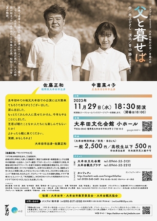ゴツプロ合同会社主催、ゴツプロ!Presents 青春の会/大牟田特別公演『父と暮せば』が2023年11月29日 (水)に大牟田文化会館 小ホール(福岡県大牟田市不知火町2-10-2)にて上演されます。