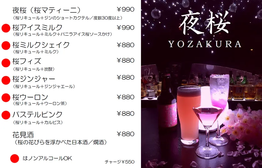 ・夜桜(桜マティーニ) 990円(桜リキュール+ジン/度数高め)