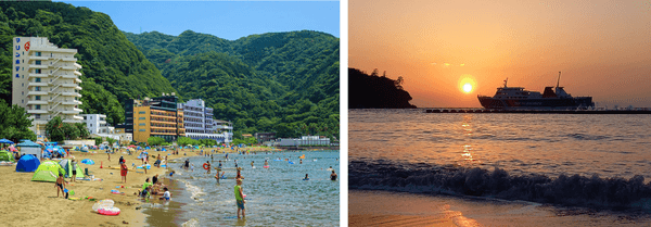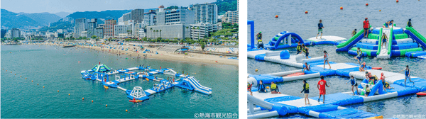 海上に巨大アスレチックが登場する<熱海サンビーチ>に程近い「ホテル水葉亭」と「あたみ」、<伊東オレンジビーチ>まで徒歩約15分でアクセスきる「ホテルニュー岡部」。3つの宿は海水浴だけでなく駅前の温泉街散策も楽しめるため、マリンレジャーと観光を欲張りに楽しみたい方にお薦めです。