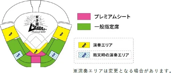 ただし、雨天等の影響により演奏エリアを内野スタンド上段等に変更する場合があります。