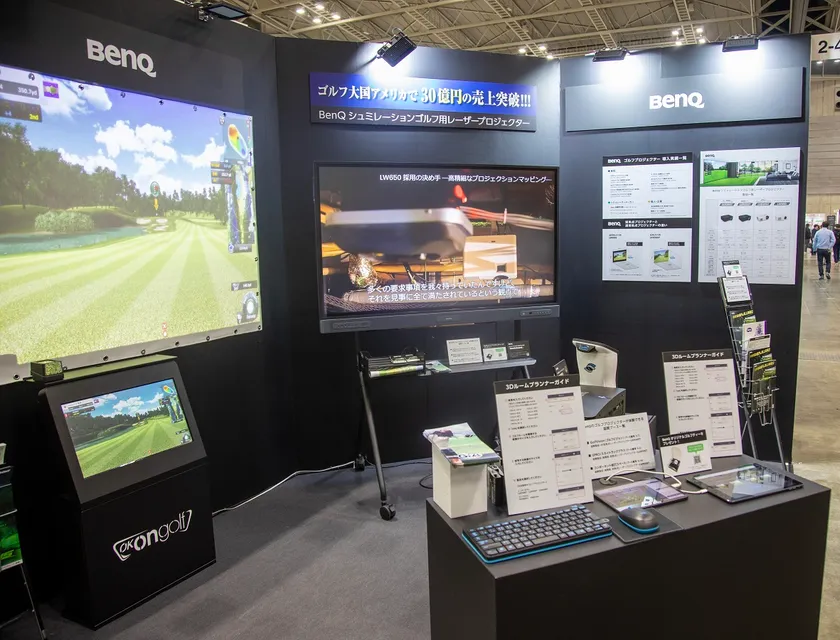 そのほか、楽天GORAブースに設営されたゴルフシミュレーターにもBenQプロジェクターが使用されました。