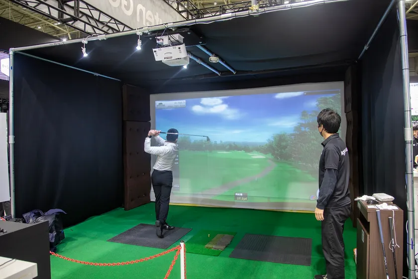 「SkyTrak+(スカイトラックプラス)」などの弾道計測器を展開する「GPRO/スカイトラックプラス」ブースでも、高輝度、短焦点のレーザープロジェクター「LU935ST」が使用されました。