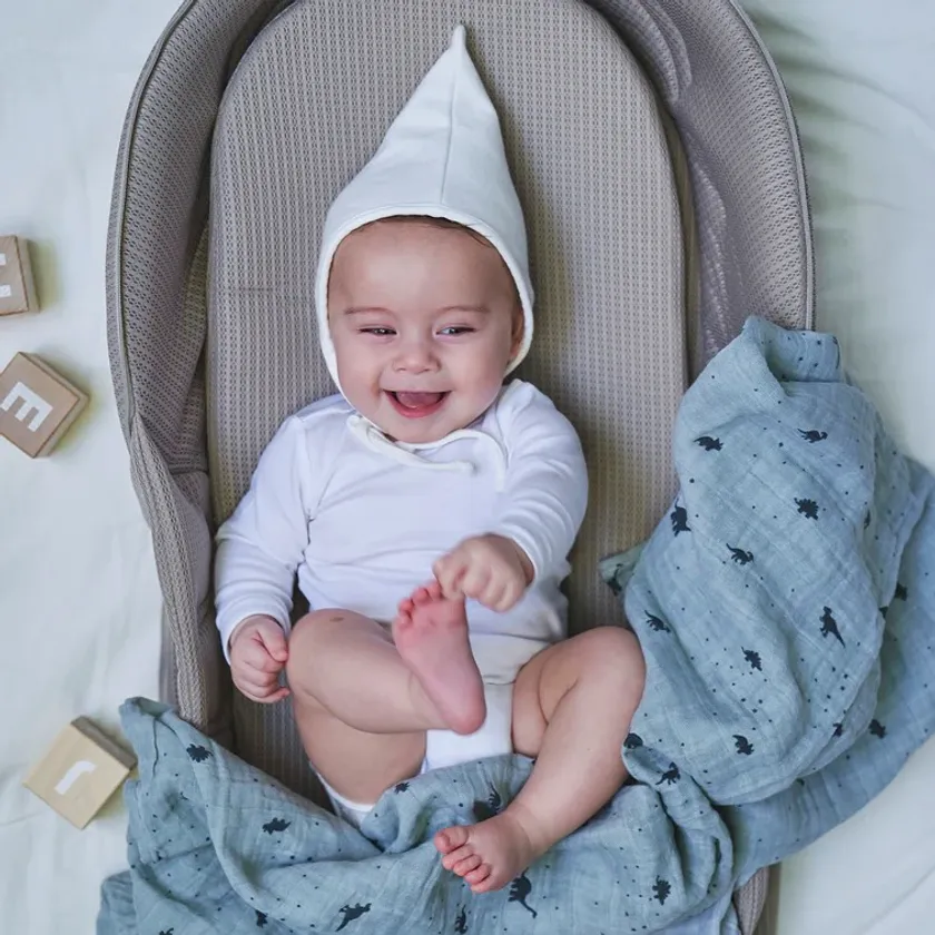●通気性のよい3Dエアーメッシュ生地を採用し、汗をかきやすい赤ちゃんも快適に過ごせる。