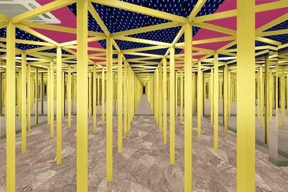 外観・内観ともにアレンジを加え、より鏡の迷宮に迷い込んだような没入体験を味わえます。錯覚と反射が生み出す迷路の世界に挑戦しよう。