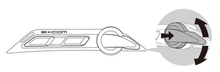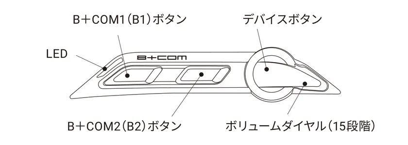 最もこだわった点は「SHOEI COMLINK」の機能性を活かすため「B+COM SX1」をできる限り薄くし、目で見ることなく指の感触だけで間違えずに連続した3つのボタンを操作できるようにしたことです。またB+COMの特性でもある電源のオン、オフや音量の上げ下げを直感的にできるデバイスボタンは「B+COM SX1」でも顕在です。